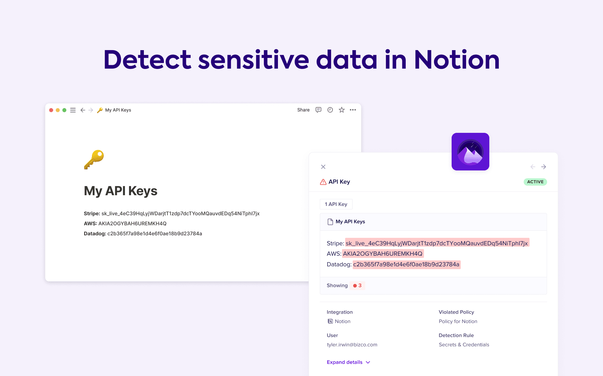 Nightfall for Notion is the first complete AI-native data leak prevention platform that stops sensitive data such as PHI, PII, secrets, and keys from leaking to Notion pages. With industry-leading AI-based detectors, you can automatically detect 150+ types of PII, credentials & secrets including API keys. Nightfall ensures compliance with leading industry standards, such as ISO-27001, SOC 2, HIPAA, and more.