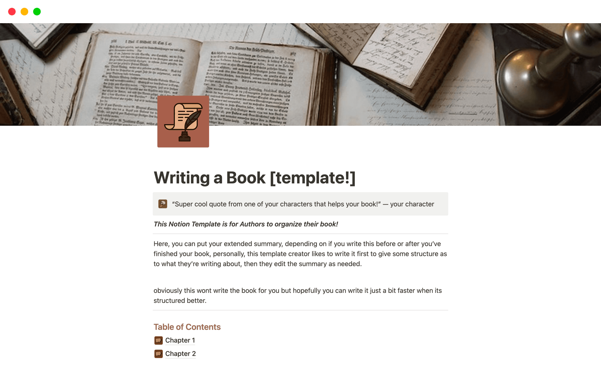 Thank you for such an expansive template for writers to draw from. There are tons of useful layers, outlining and worldbuilding tools anyone could benefit from :)n