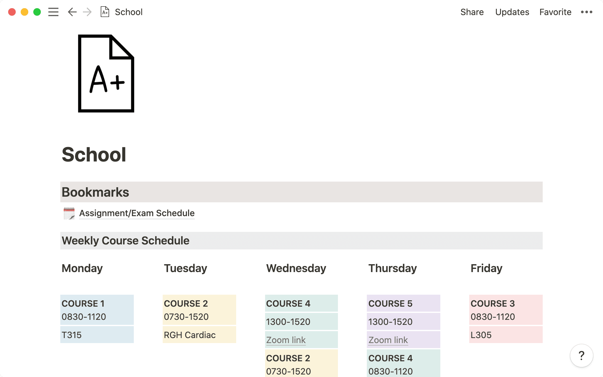 If you're a busy college student looking for a one-and-done dashboard, this is it. All parts of your life live side-by-side — but each has its own designated section you can customize. Assignments live in a database so you’ll never miss a deadline. Track your personal budget and expenses. Keep your roommates accountable with the shared roommate space. No excuses!